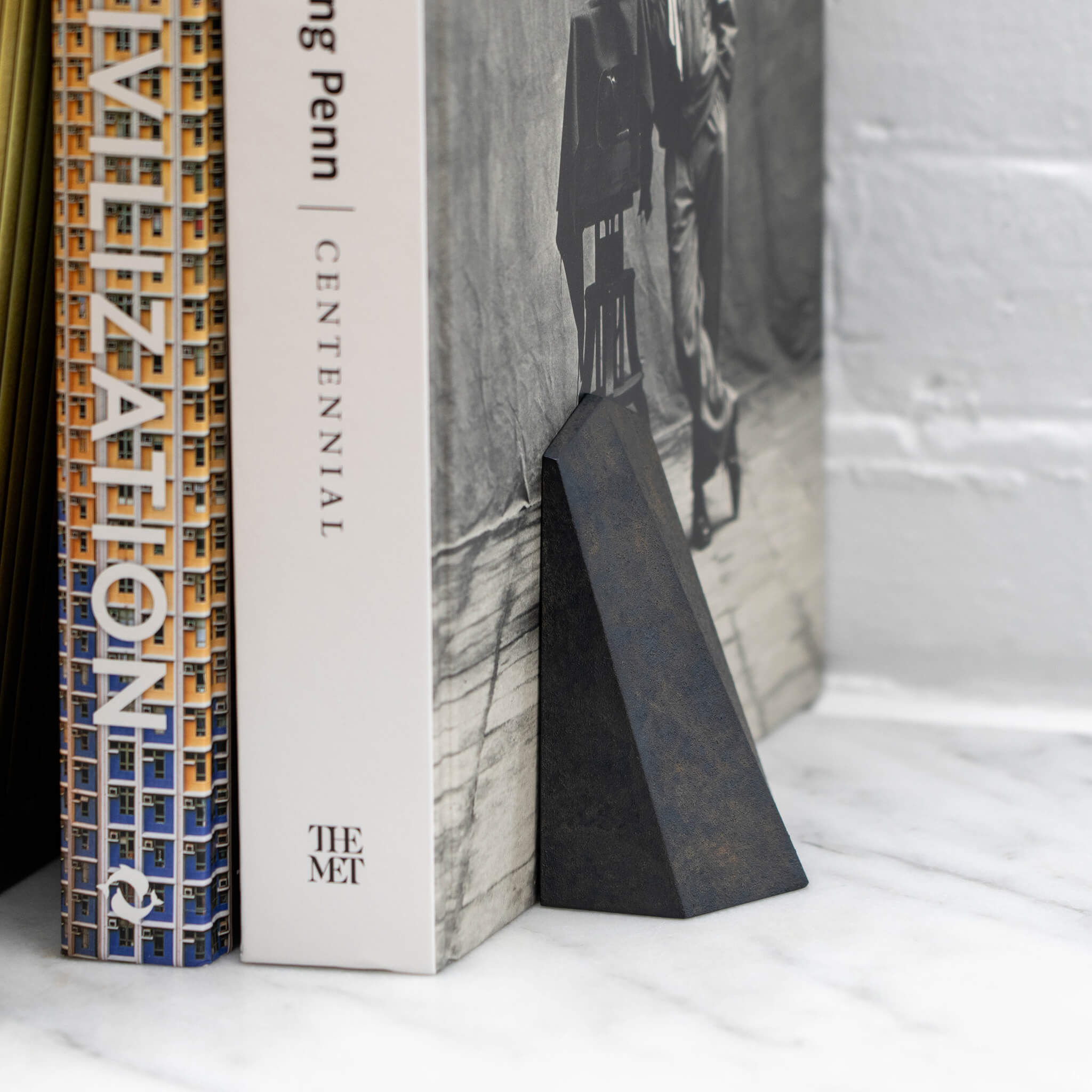 This brass-cast textured bookend provides a solid weight to support your books. When using a single bookend, you can prop your books against the edge of a shelf or wall. With two bookends, you can sandwich your books from both ends even in the middle of a shelf. The bottom is lined with felt to protect your shelves and tabletops from scratches.