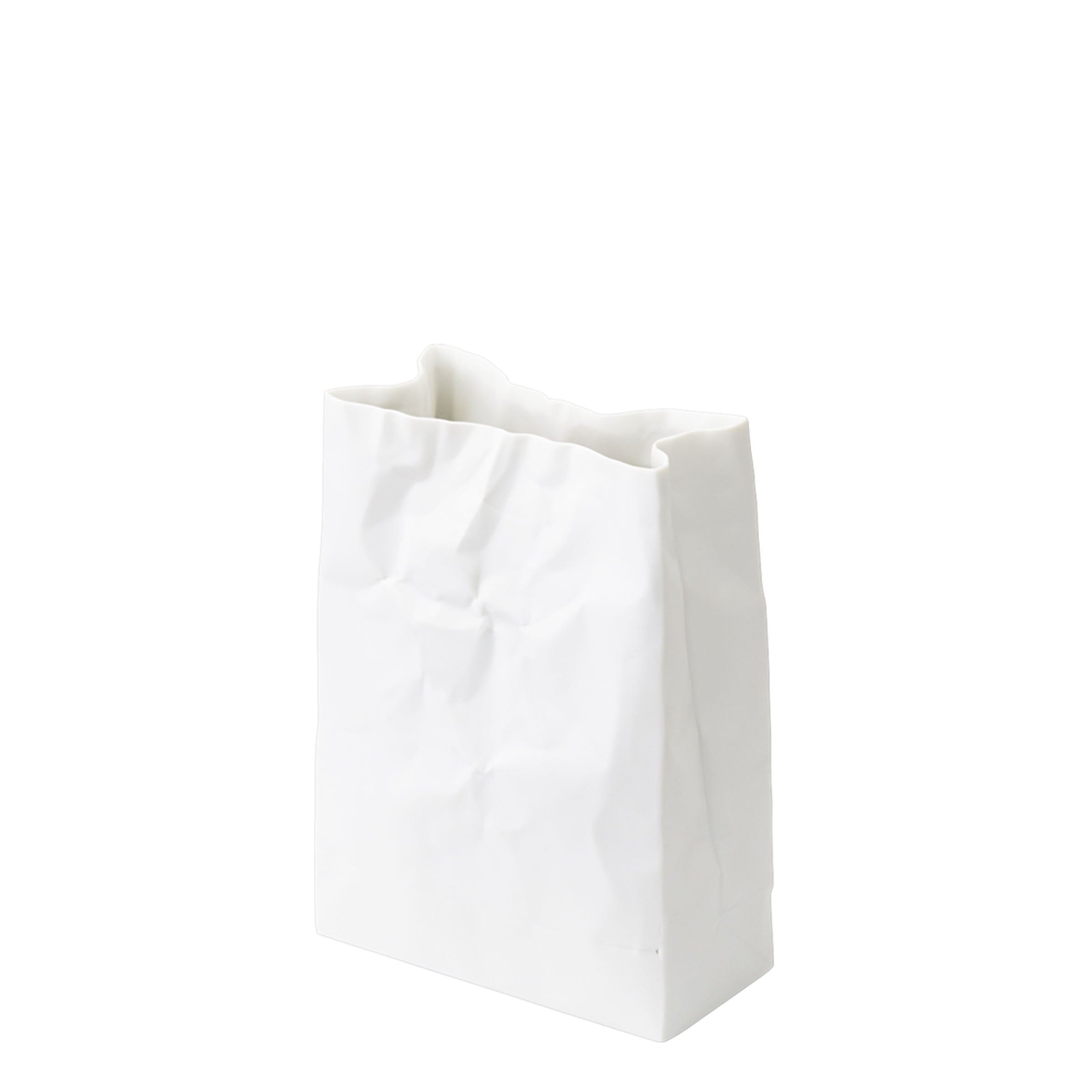 This Crinkle series transforms the familiar shape of a paper bag into elegant porcelain flower vases. Using plaster molds to capture even the finest textures of crumpled paper, each piece is crafted with remarkable precision in Seto, Japan.