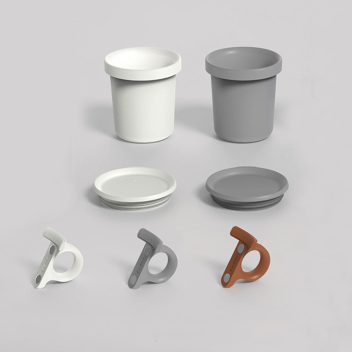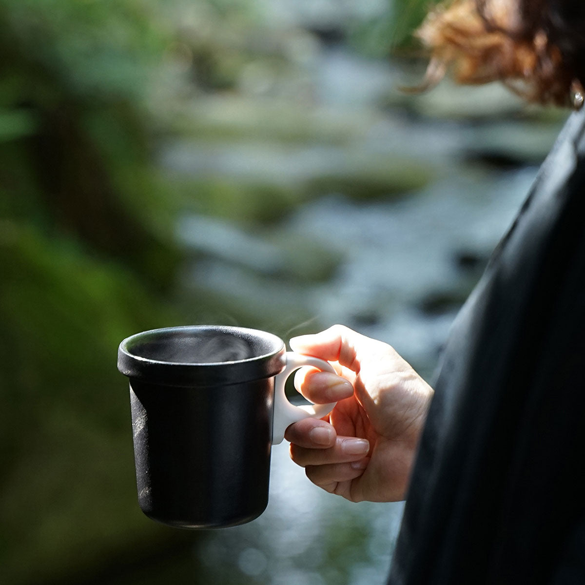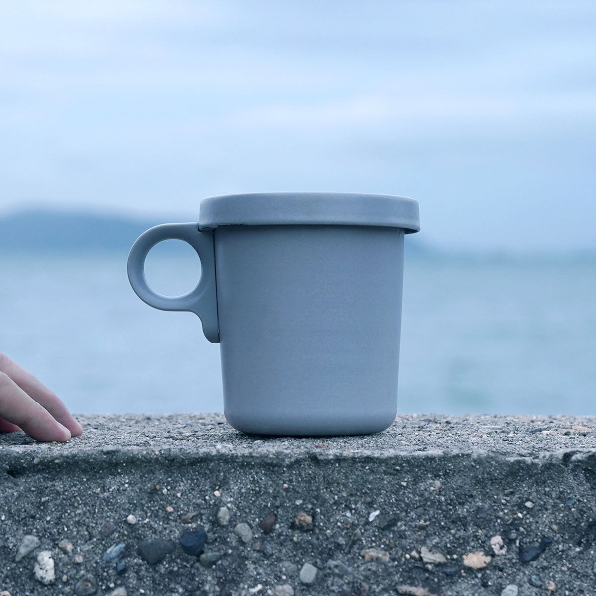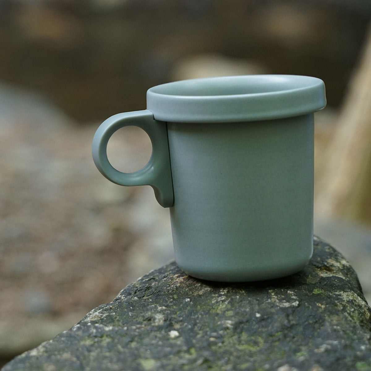 The ovject enamel mug features a detachable handle, allowing for easy stacking, portability, and customization. This mug is designed for both indoor and outdoor use.