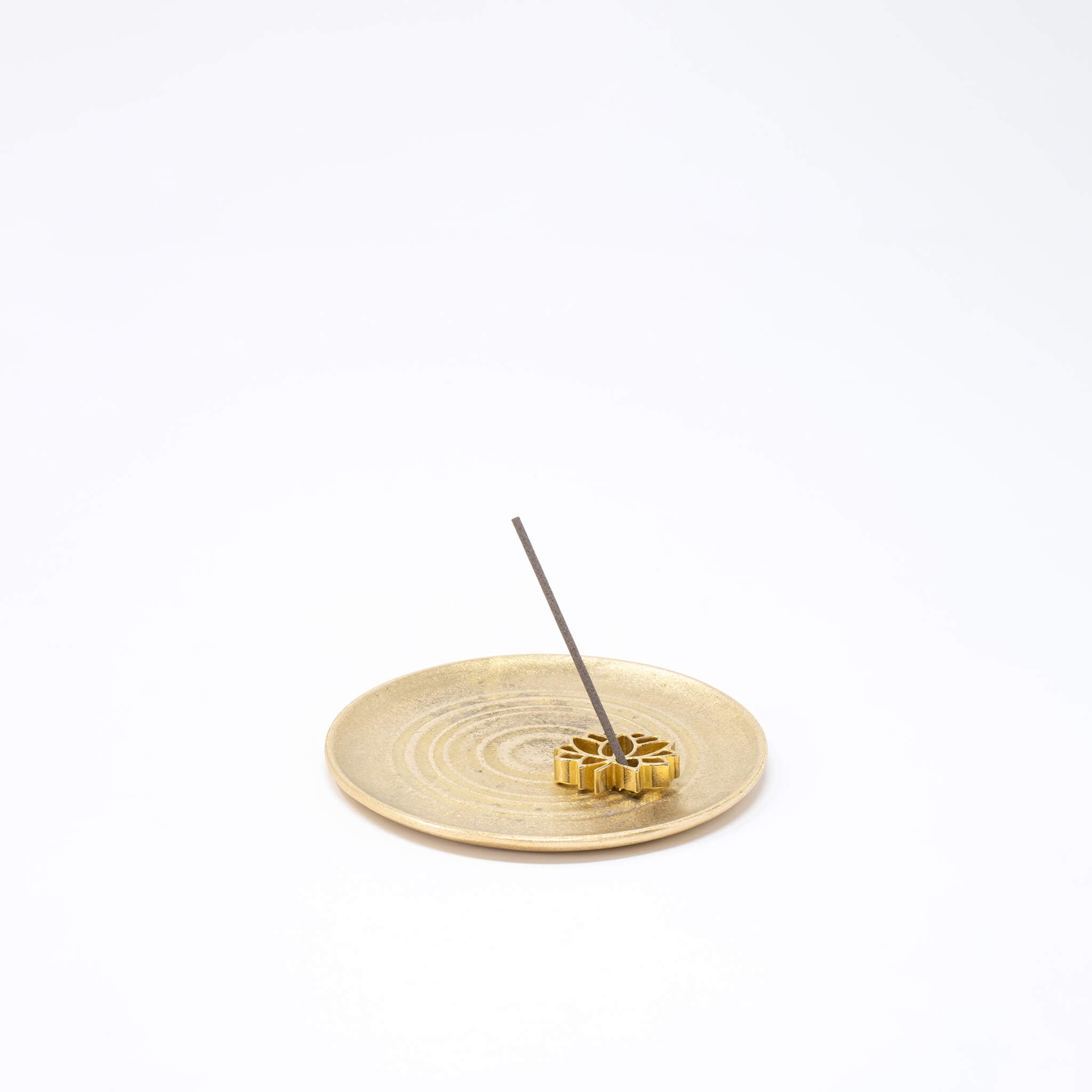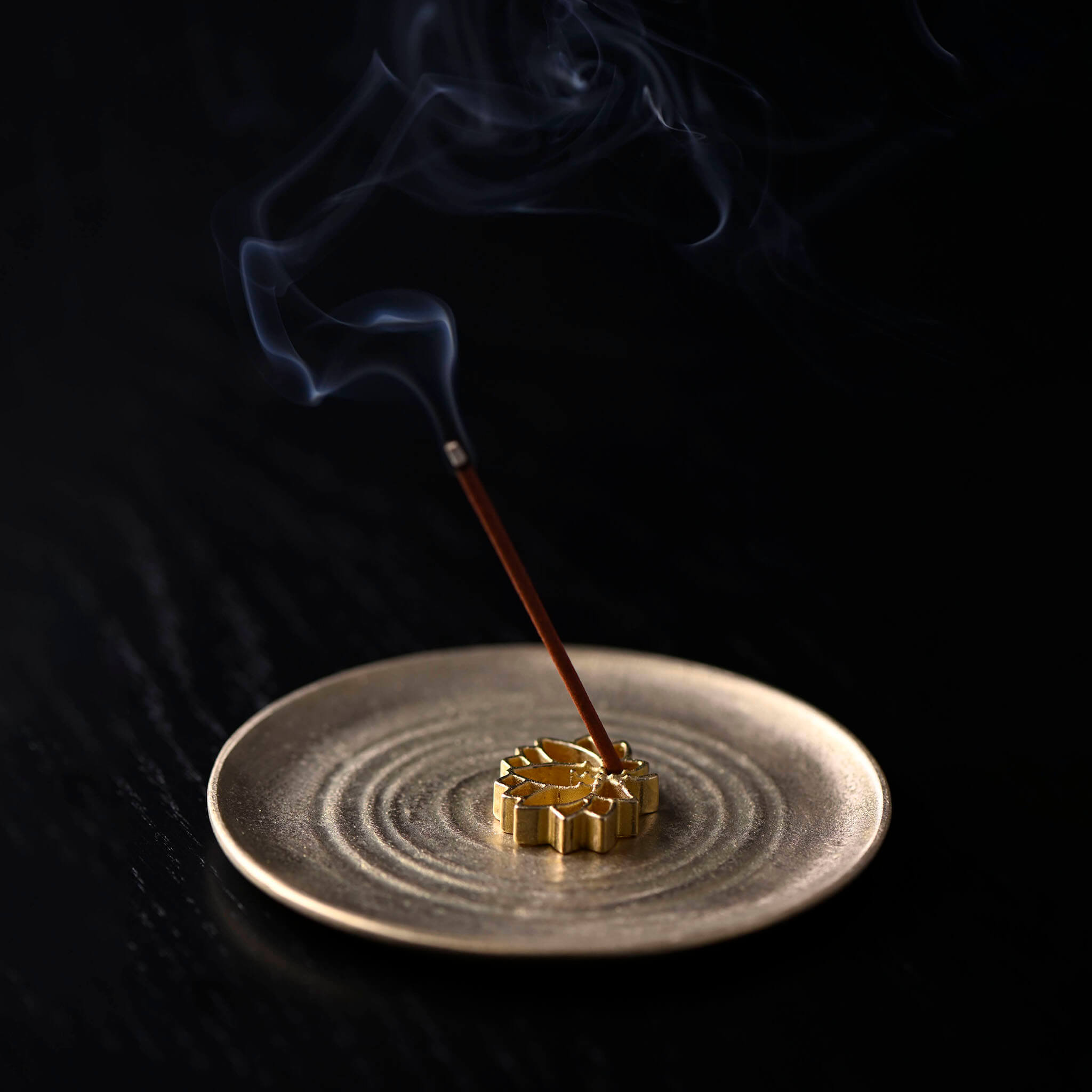 Brass Incense Stick Holder with Tray 'Lotus' - GINGADO