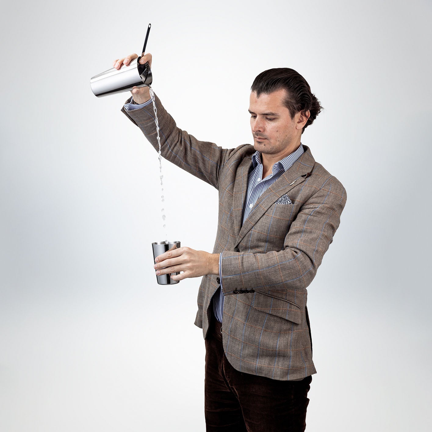 Though a quick look may not reveal the extent of the innovation, our Double Tin Shaker is a masterpiece. The 50 Tin fits naturally at an angle on the 80 Tin, creating a straight line to take advantage of the long stroke. The inside edge of the 50 Tin is finely beveled to minimize any damage to ice, a major drawback with standard double tin shakers. The 35-mm overlap section on either tin is cylindrical to maximize the fit, while a subtle curve to the rest of the body ensures a smooth, efficient flow. With our design, you don’t have to bang the top or struggle to separate the tins.