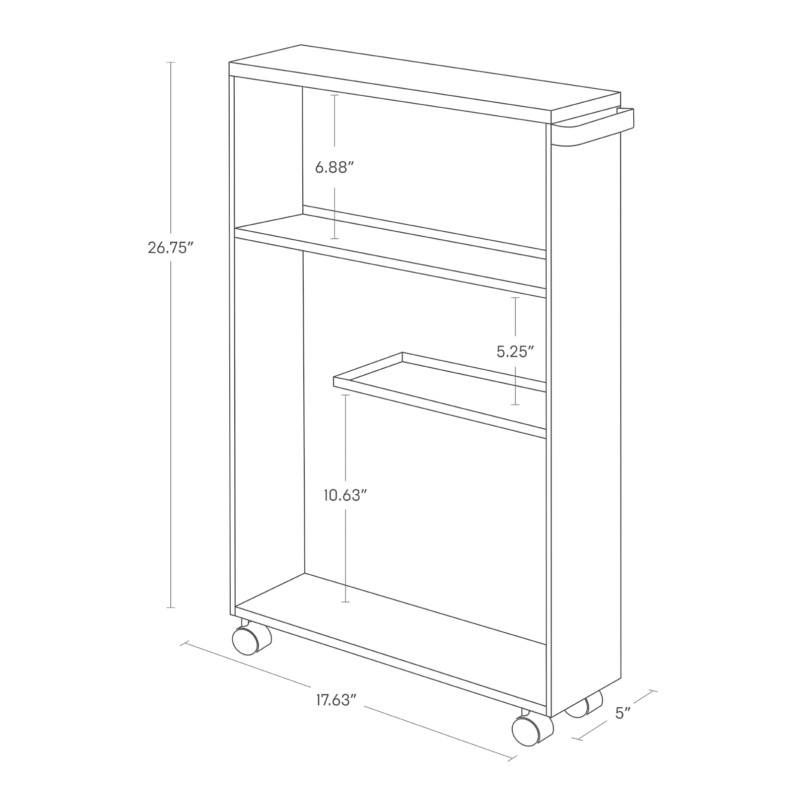 You’ll never run out of bathroom essentials, like toilet paper, cleaners, and other bathroom products with this minimalist, discreet rolling cart. Its slim profile makes this cart perfectly at home facing toward or away from walls, or nestled between tight spaces.