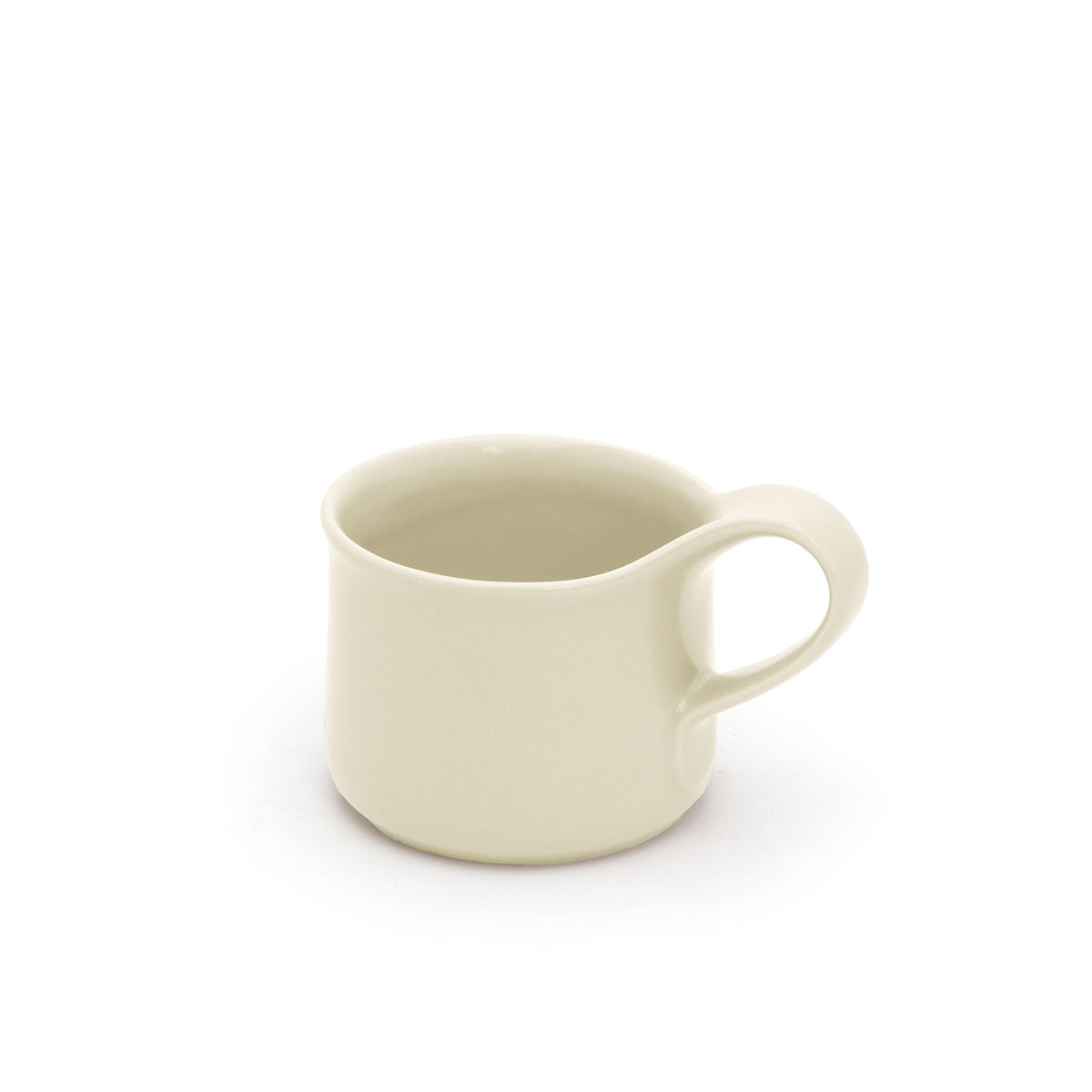 This adorable compact mug is designed for those who like to indulge just a little bit of the specialty drink at a time. Sleek and minimal, the colorful mugs are made to go with a wide style of kitchen and tableware.Β Their handles are designed for your thumbs to rest comfortably while you savor your every sip. The mug holds 5.4 oz, without filling it to the very top, perfect for just the right amount of cappuccino, espresso or tea.