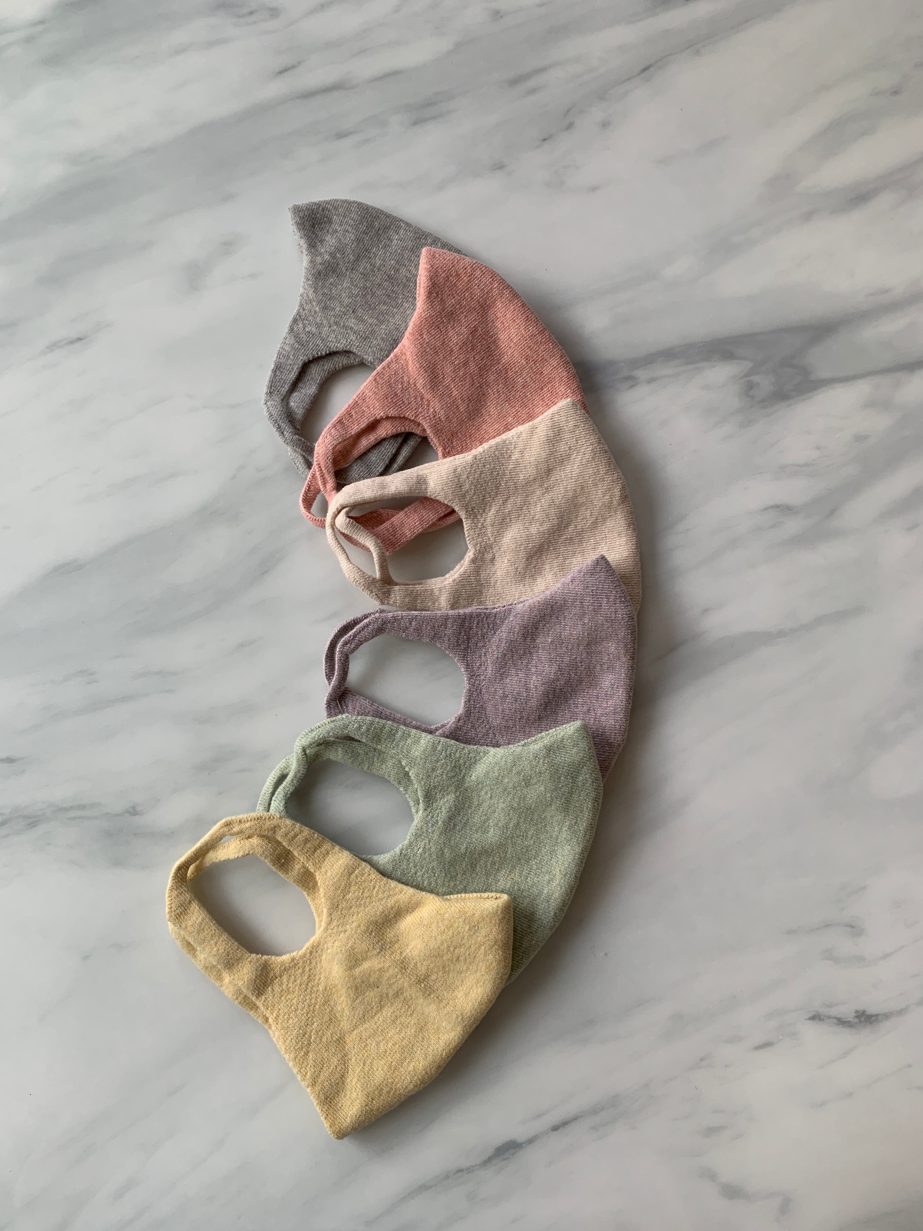 Our face masks are made of OCS (Organic Content Standard) 100 Certified Organic Cotton (80%) that are dyed with the colors extracted from natural plants and flowers, which brings soft and mellow colors. Find your favorite color from 7 choices: Blueberry, Mallow Black, Carnation, Fragrant Olive, Pansy, Lily of the Valley, Sunflower.
