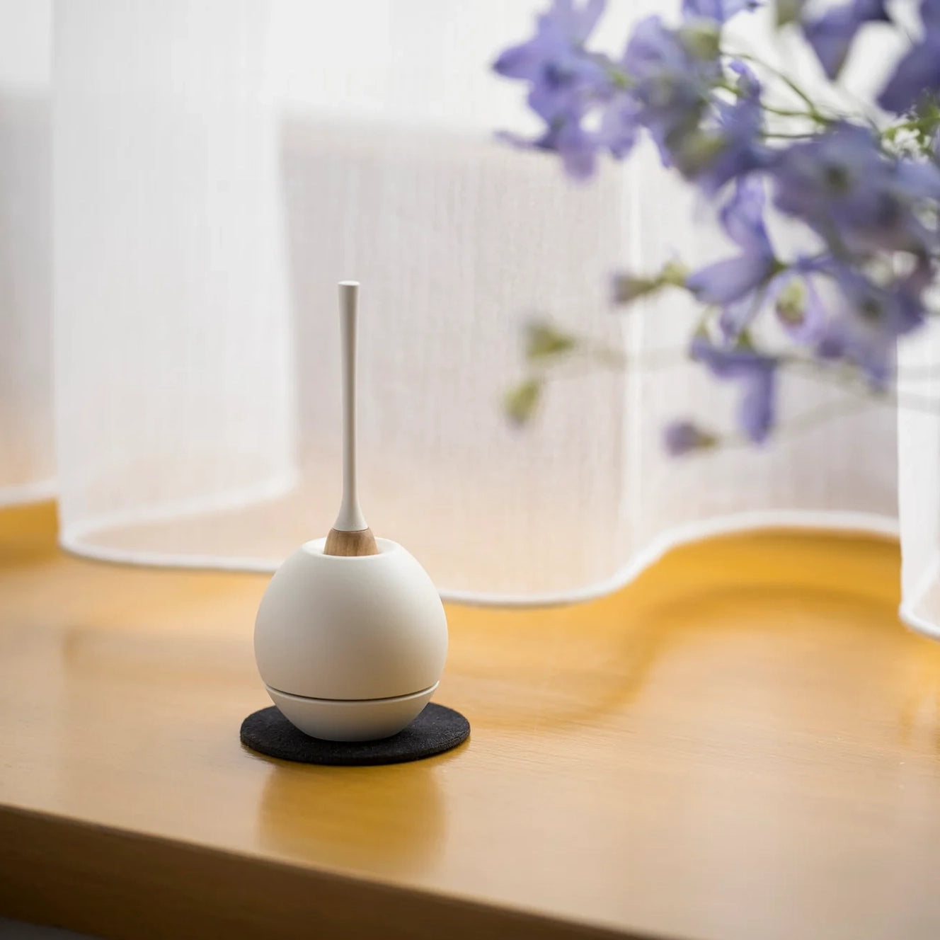 With its charming, cherry-like shape, Cherin is a modern take on the traditional orin (Japanese Buddhist bell), blending seamlessly into contemporary lifestyles like a refined art object.