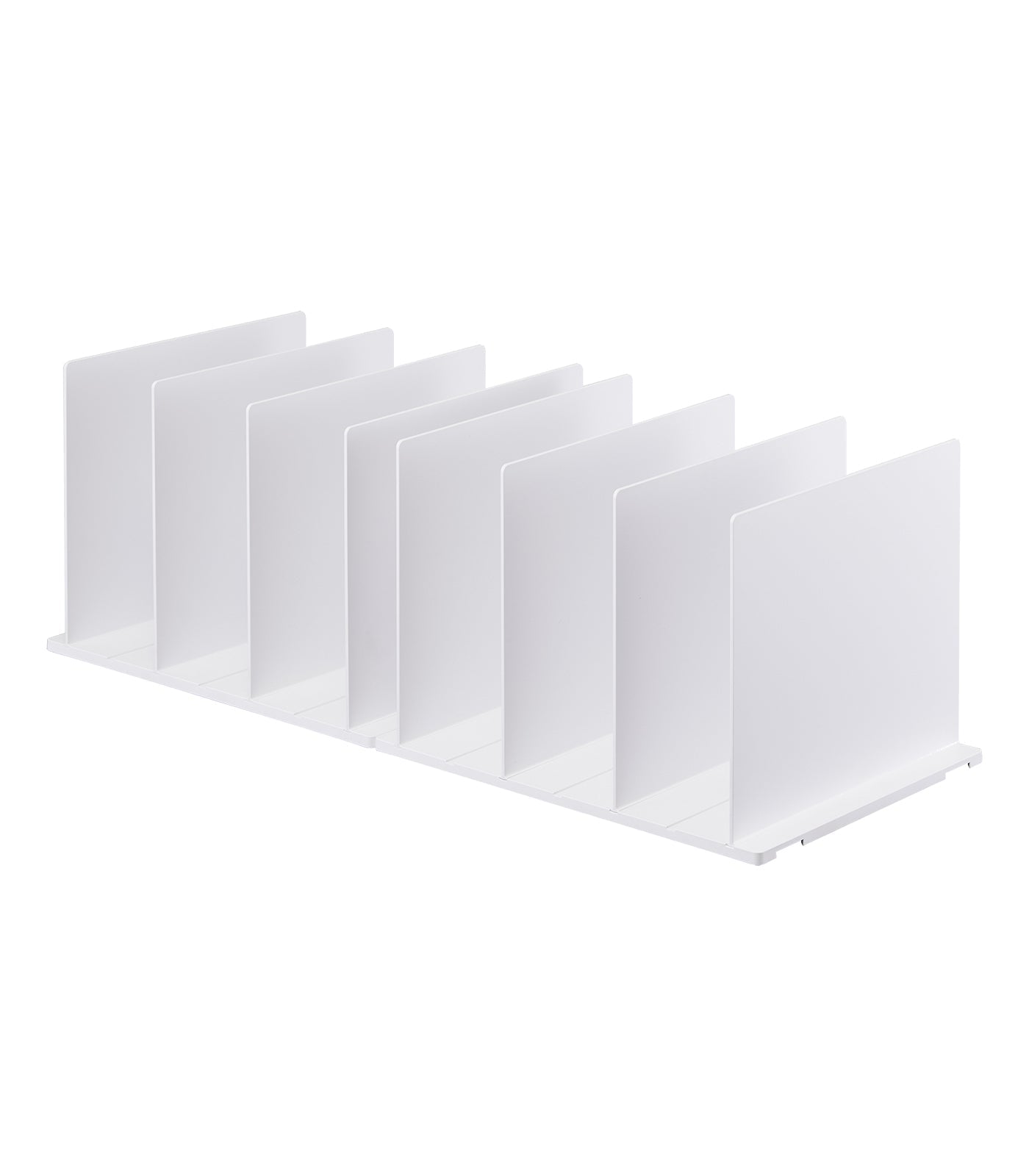 - Comes with eight vertical dividers that slide into the base pieces. Space them apart as needed.