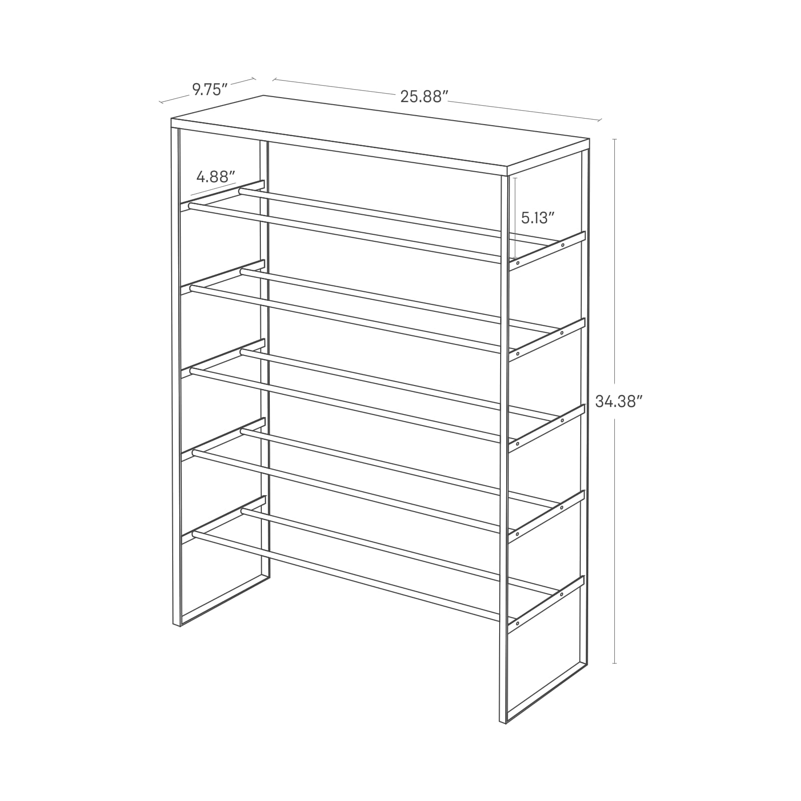 Youβll be organizing shoes galore with this 6-tier beauty. As practical as she is pretty, this rack also comes with clip hooks for hanging umbrellas and a beautiful wooden tabletop for catch-all trays or decoration. Donβt worry about taking up too much space; with a minimalist metal frame, this shoe rack also offers a small footprint. Ready to get your shoe storage off on the right foot?