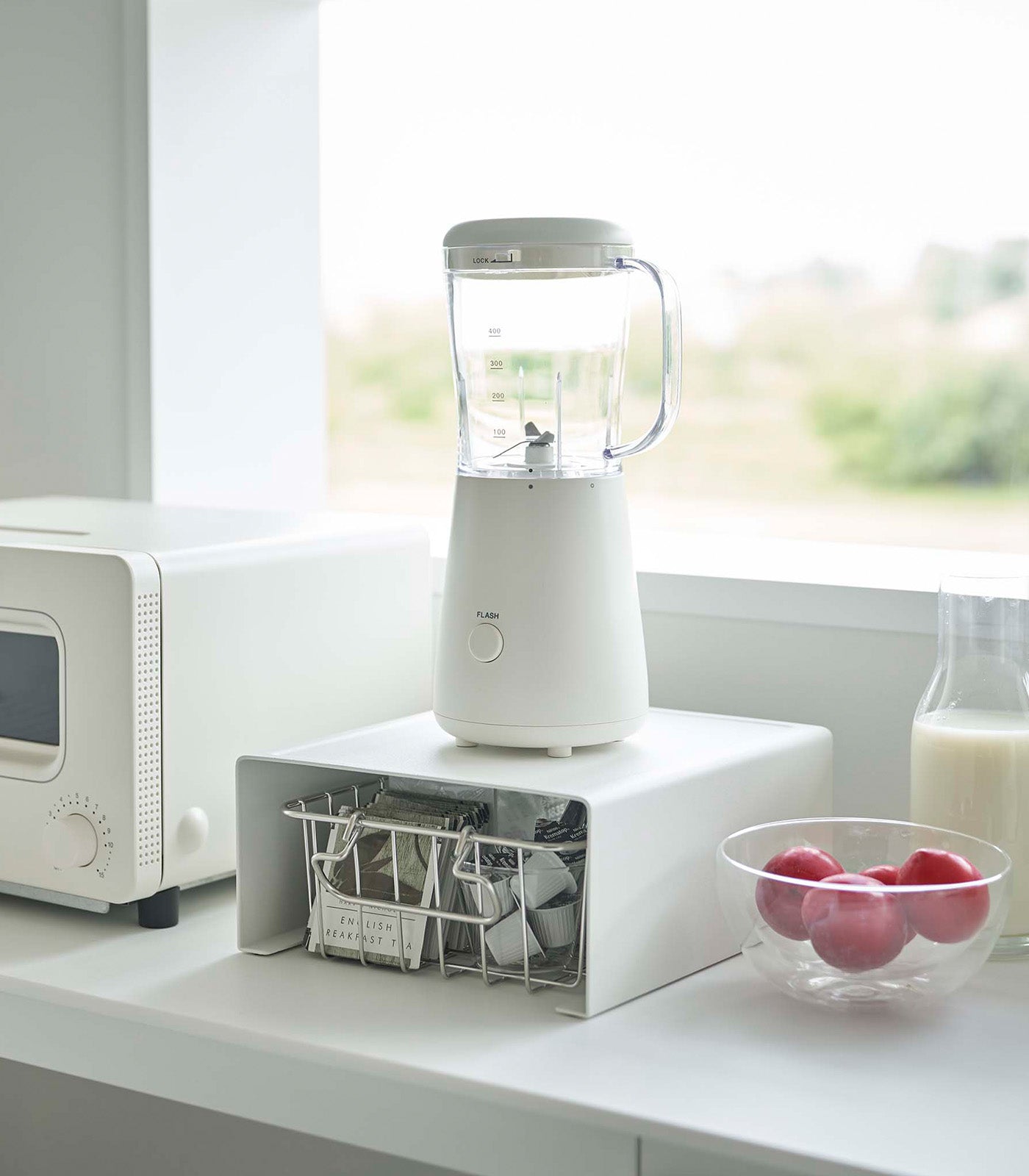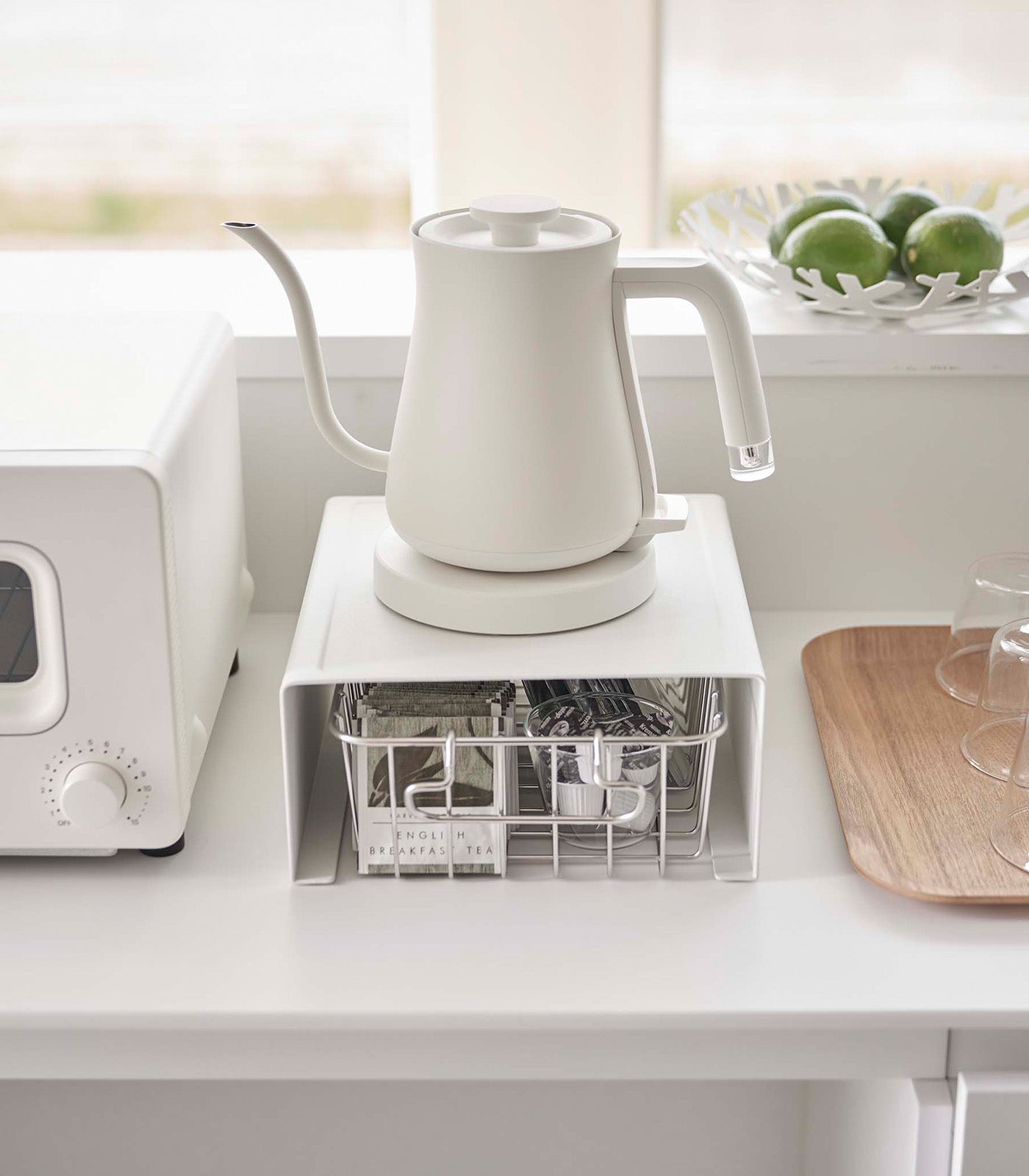 Are kitchen appliances like electric kettles and coffee makers hogging precious countertop space? If so, this sturdy rack will do wonders for you. Place your appliances on top and utilize the space under the rack to keep tea bags, napkins, or other kitchen miscellanea handy without cluttering the kitchen. The sleek steel frame lends a clean look and sturdy support, sure to streamline everyday moments in the kitchen.