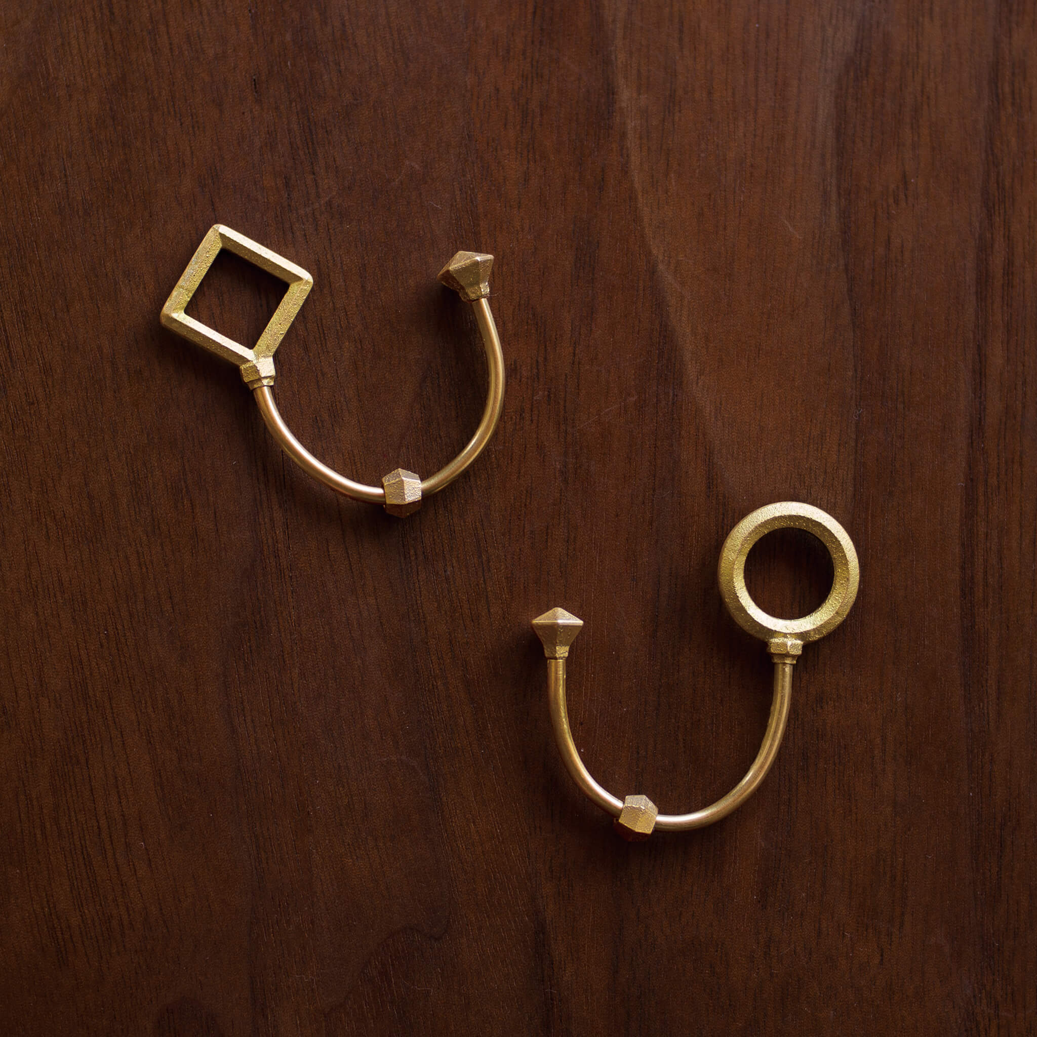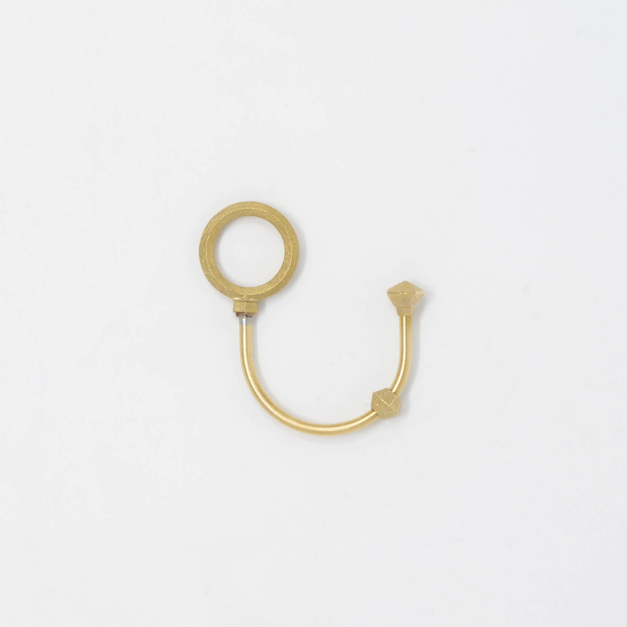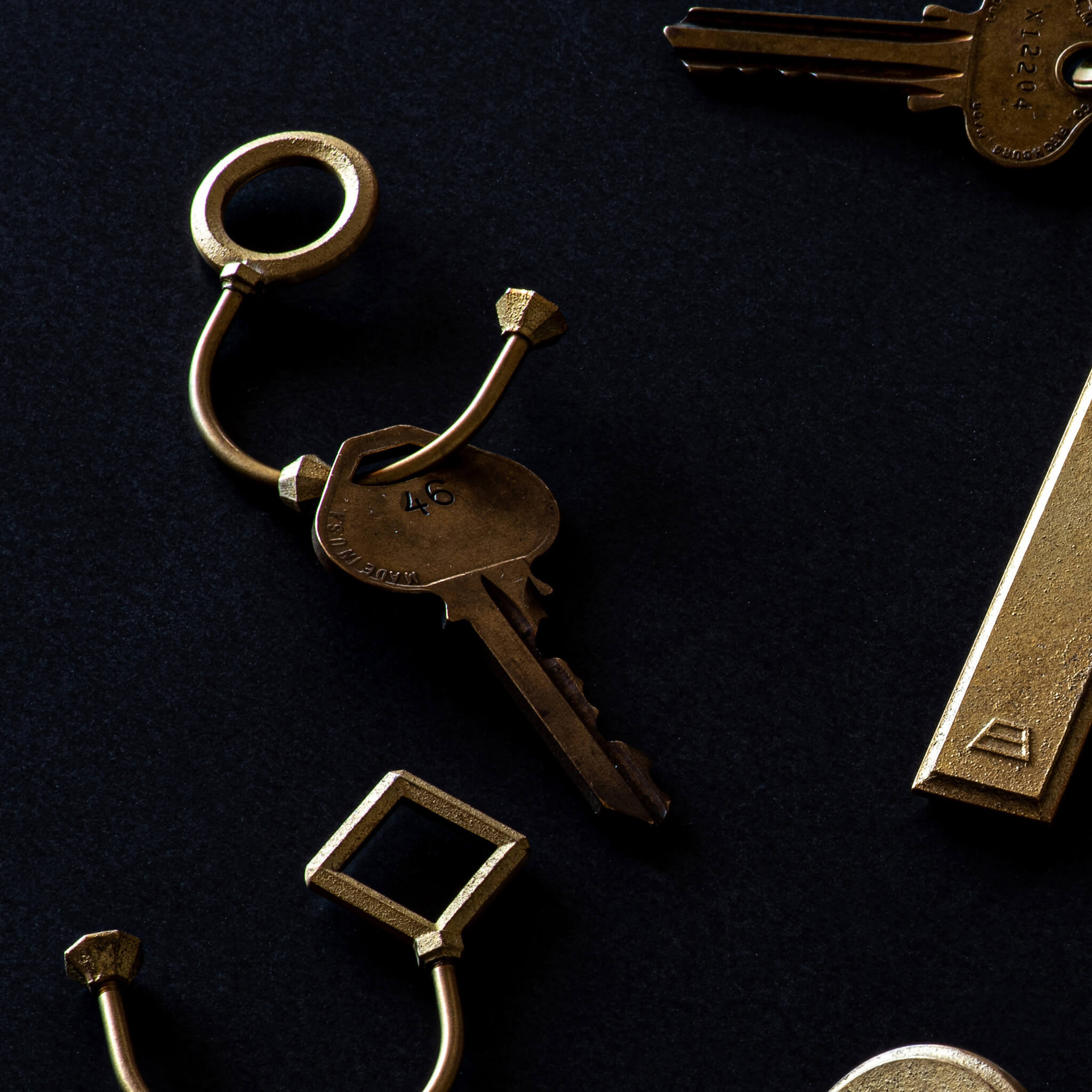 A beautifully crafted brass key ring with a natural cast texture. Attach keys on either side of the moving brass “shooting star” element to easily separate sets, such as “work” and “personal.” When not in use, you can hang it by the circular part for stylish storage.