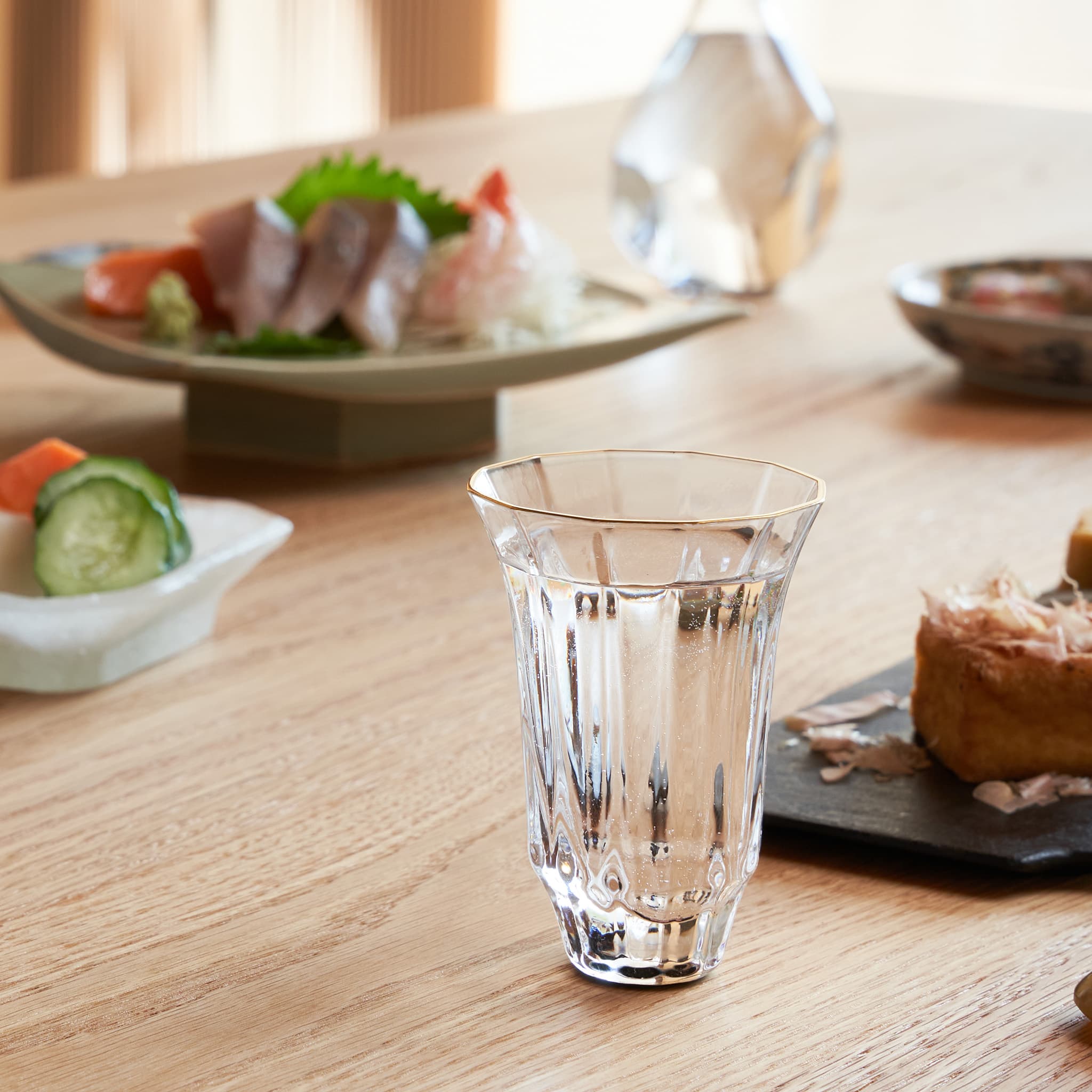 Each piece weaves together the delicate art of Raden glass and Takaoka lacquerware—a traditional Japanese craft. Shimmering shells are meticulously inlaid by hand and sealed with lacquer, transforming every glass into a one‑of‑a‑kind artisan masterpiece. Crafted with 12 delicate facets and an iridescent abalone inlay, each sip reflects a kaleidoscope of colors. The refined gold rim adds a subtle touch of luxury, harmonizing tradition and modern design.