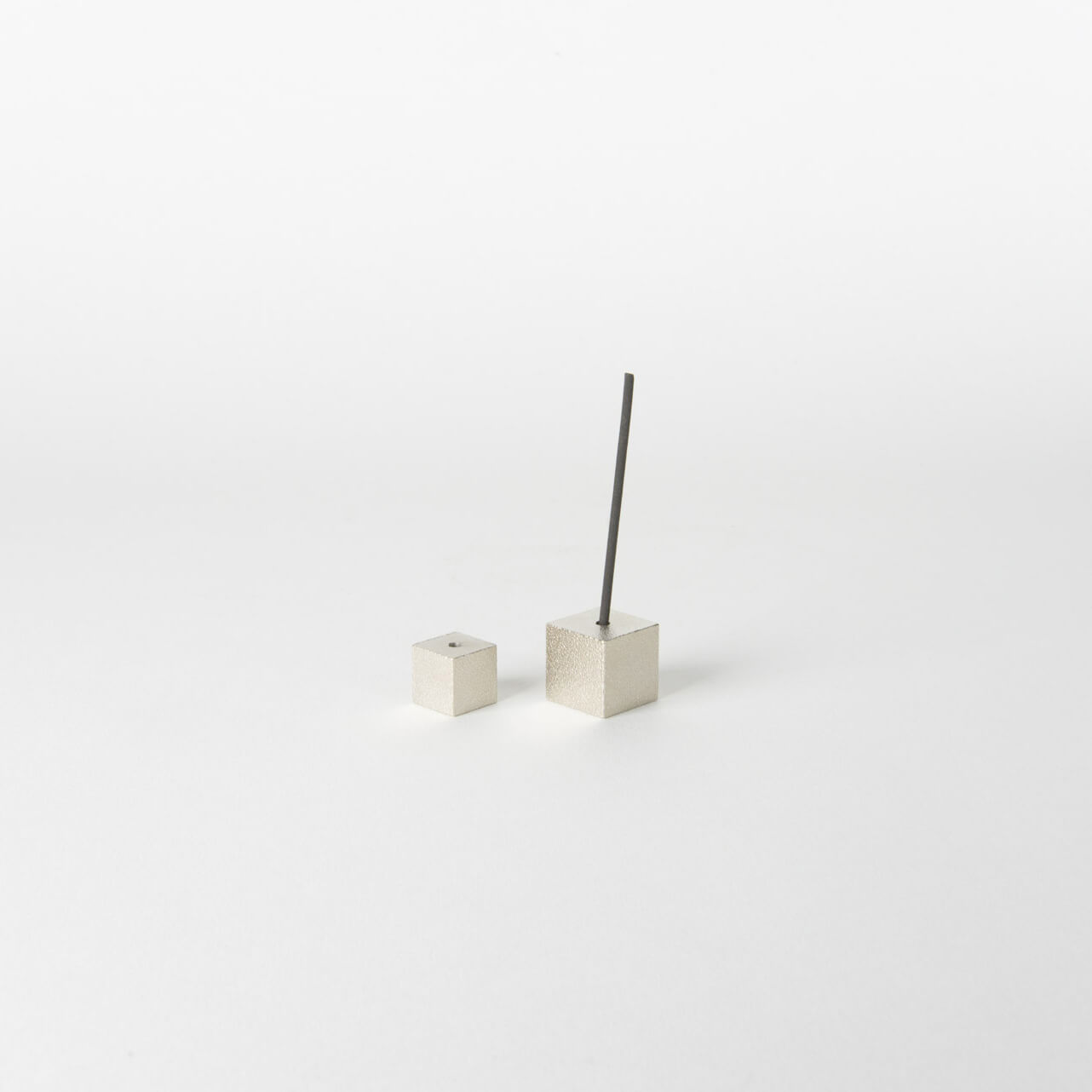 Minimalist silver/gold cube incense holder. Designed for daily rituals with a contemporary touch.