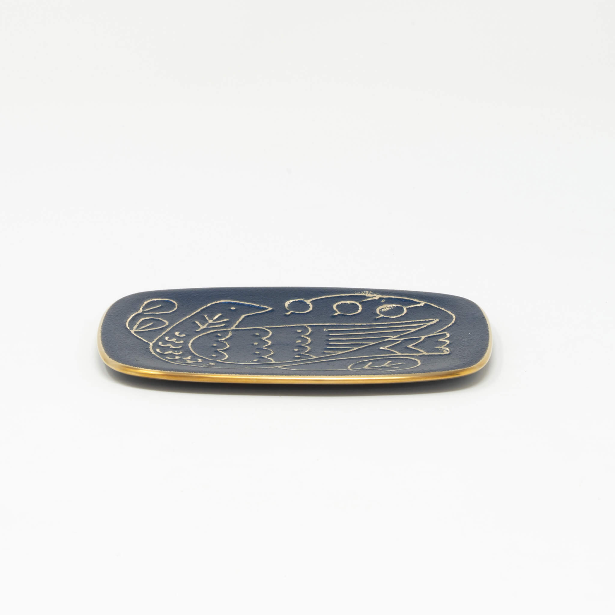 Blue-Lacquered Solid Brass Multi-Purpose Tray Small Blue/Gold - CASTIN'