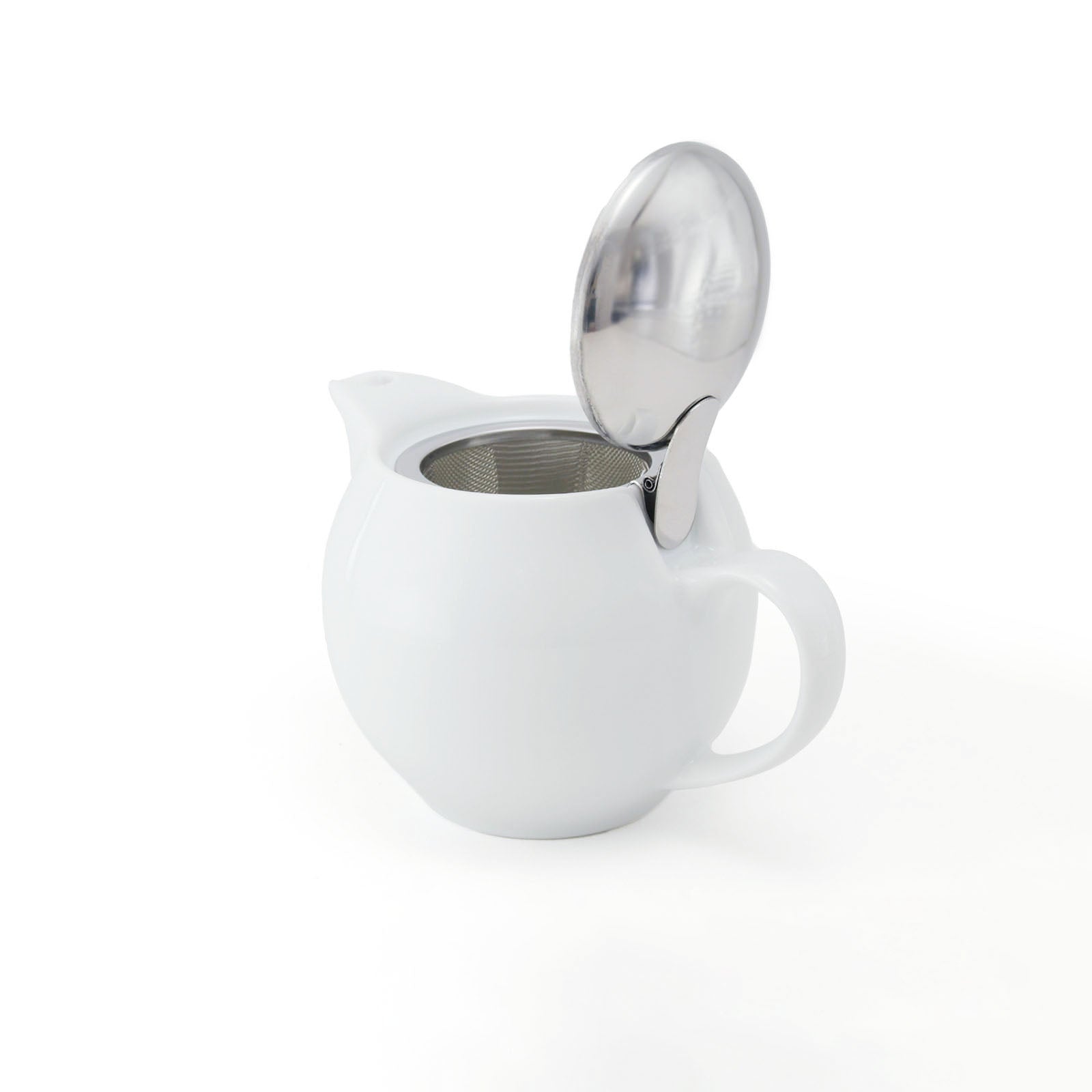 Compact and unique, 15 oz teapot is perfect for brewing 1 cup full and a few more sips! You can enjoy your own flavor of tea every morning without over-brewing, while keeping the tea warm for a longer time than when brewed in glass tea pots. It’s also thoughtful in its designs; durable enough to take an accidental bump (no, this has not been dropped before), the lid stays on when you pour, but comes off easily for cleaning; and the removable mesh basket is fine enough to keep out all but the smallest particles.