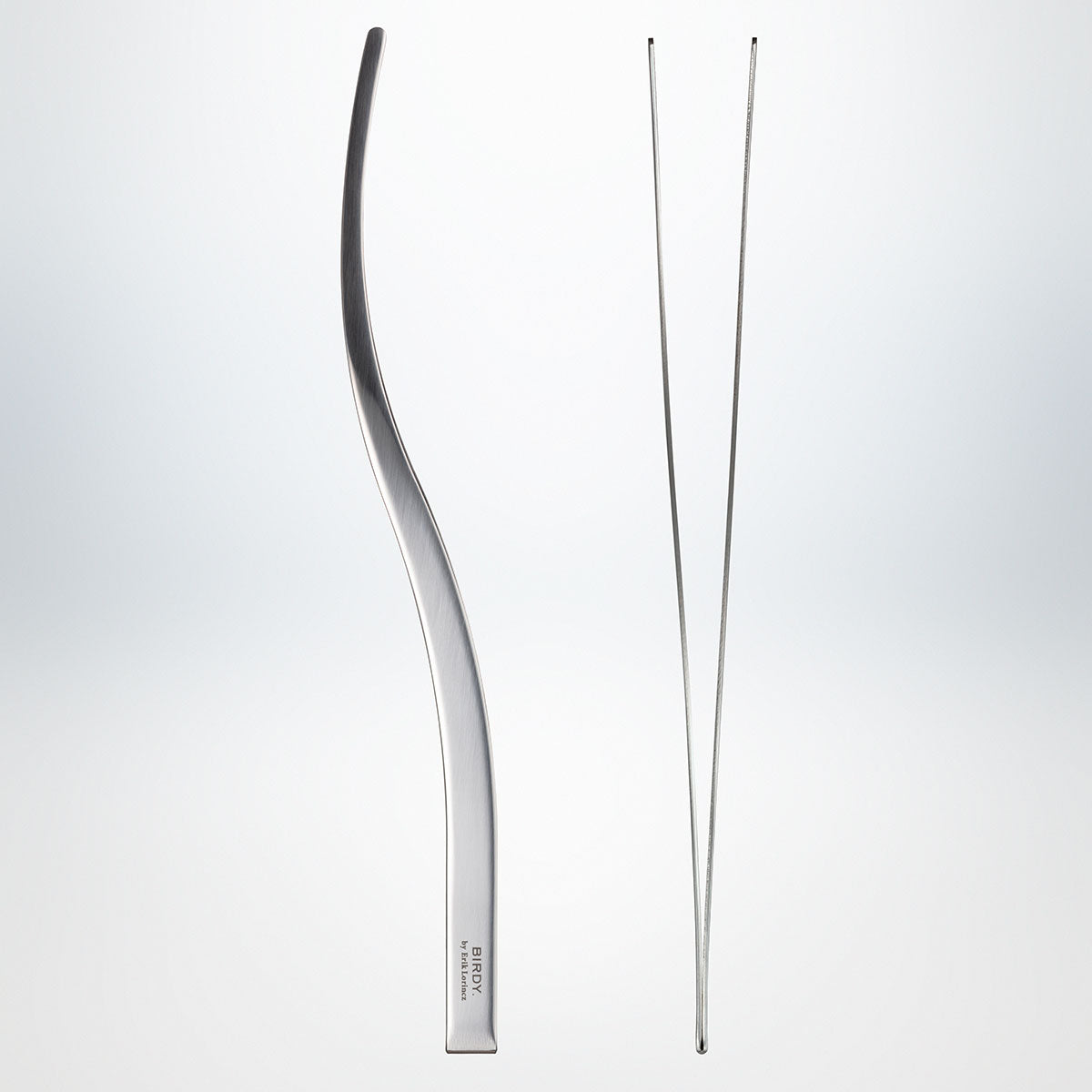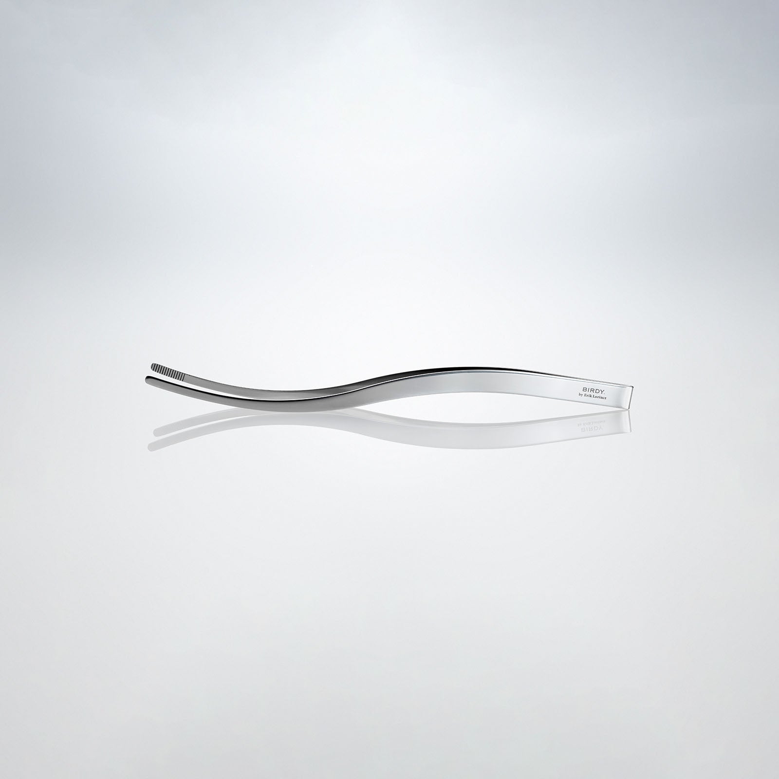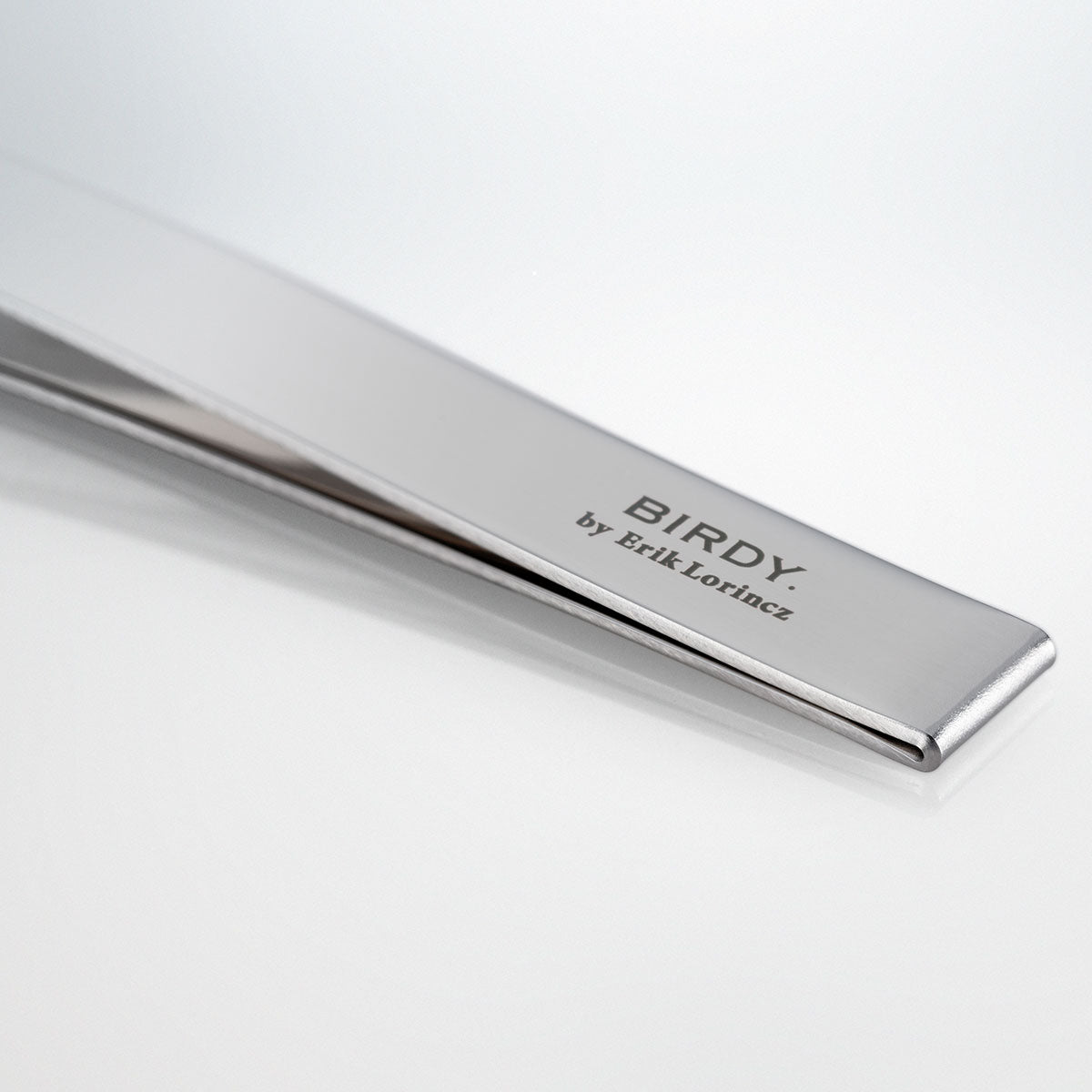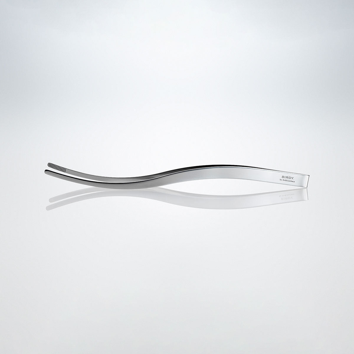 BIRDY. by Erik Lorincz Cocktail Tong have been developed as a special item for bartenders. With its refined design and sleek silhouette, it allows for beautifully enhancing movement. They feature a single sheet of mirror-finished steel plate pressed with a calculated force of 1.5 tons to set the fulcrum in the optimal position.