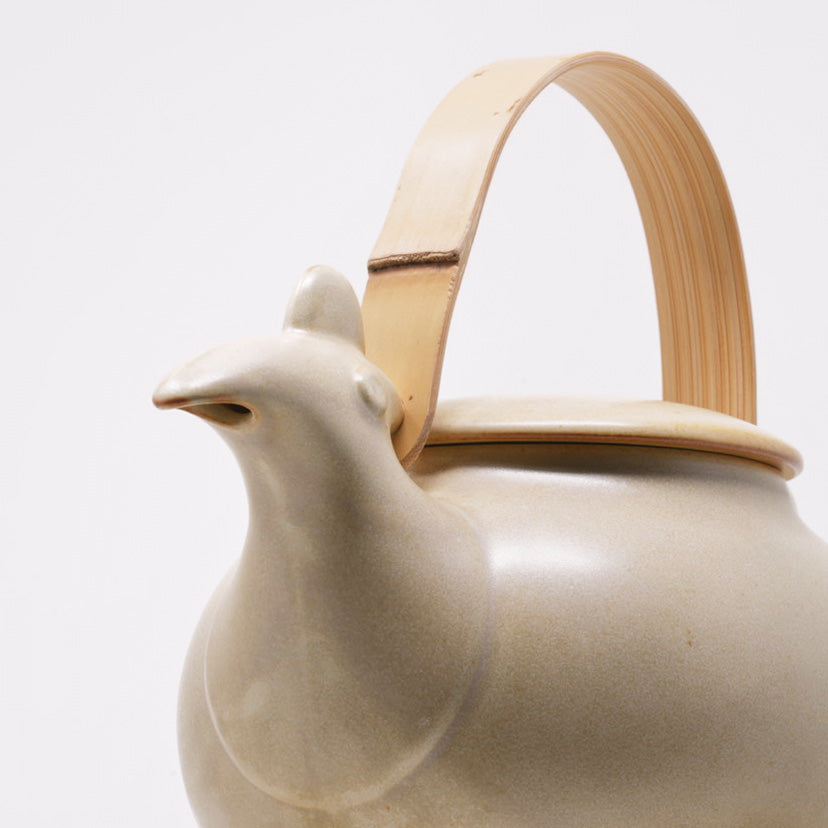 This dobin teapot is crafted from semi-porcelain, a material that combines the refined strength of porcelain with the warmth and character of earthenware. Inspired by ancient animal-shaped vessels, its bamboo spring handle and functional spout have been carefully designed to provide a smooth, drip-free pour. The charming bird motif seems almost ready to come to life, adding a playful yet timeless touch to your table.