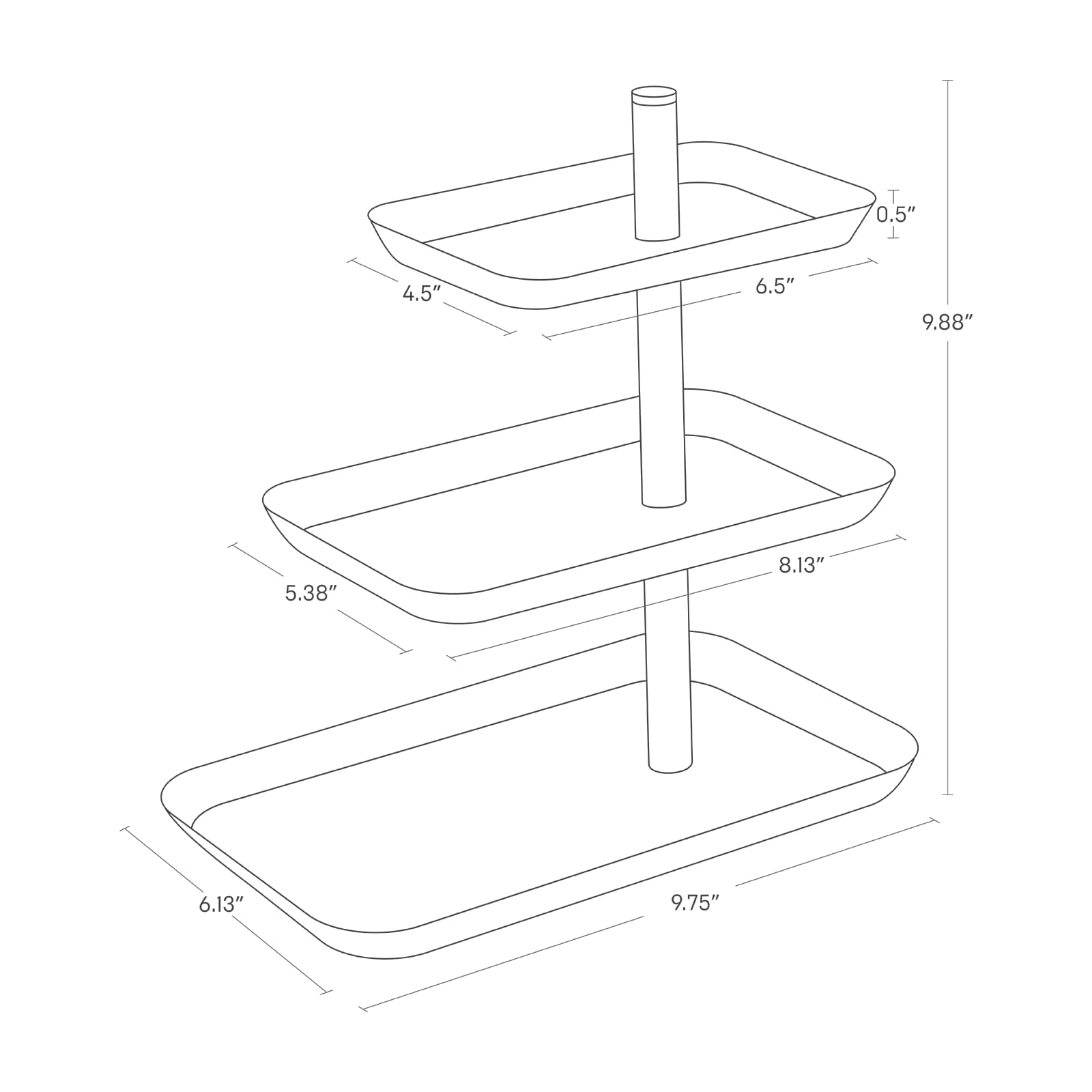 Pile on the sweets with this three-tiered serving stand. The fanning stack of trays make the perfect display for desserts or finger foods, and the modern design suits any tabletop. Perfect for high tea or a fancy brunch.